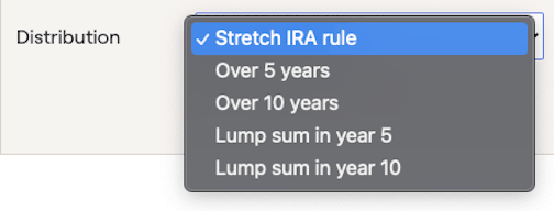 - Stretch IRA rule (default value): This option stretches payments over the life of the new or original owner.