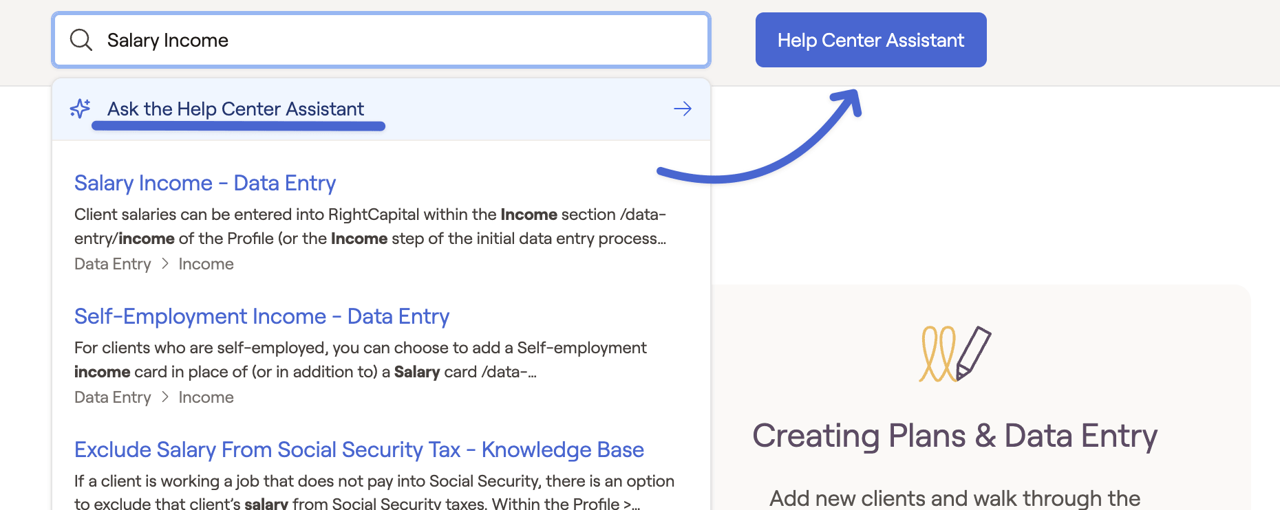 - Use the Help Center Assistant to find specific and curated answers to basic questions on RightCapital. The assistant is an AI tool which pulls from the help center to find the best answer to your question possible.