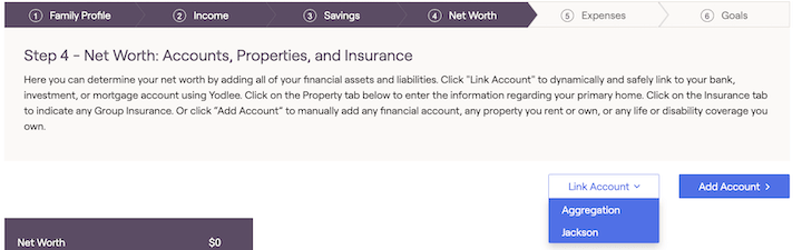 Navigate to Profile > Net Worth (or the 4th step of the initial data entry