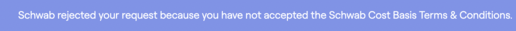 If an error message like the one above appears during this step, click the link below to accept the Cost Basis Terms & Conditions in Schwab Advisor Center:
