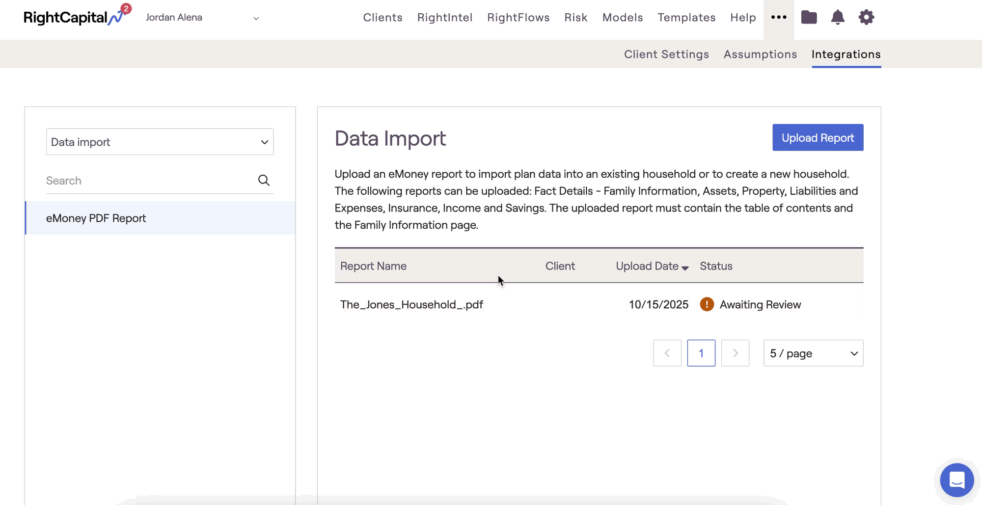 - New Household: Uploading to a new household will create a new plan that includes the personal information of the client (email, phone number etc).