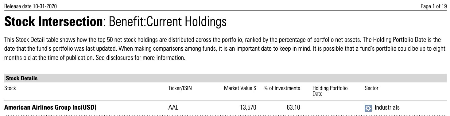 The stock intersection report will illustrate the 50 largest holdings within the client's investment portfolio while displaying overlap between the same holding in multiple funds. Advisors can choose to generate the portfolio snapshot and intersection within one combined report.