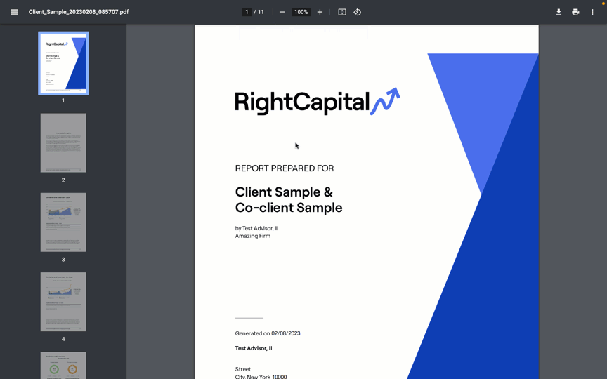 When generating a report of the Tax details, the information will include a page for the client and the co-client.