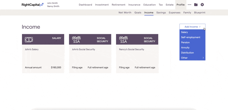 RightCapital allows you to account for an outstanding 401(k) loan directly within the platform. Unlike the typical loan workflow, these are built directly into the 401(k) investment. This helps provide a more accurate picture of the client's current financial situation by capturing both the retirement account value and any associated loan obligations.