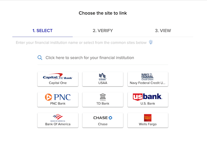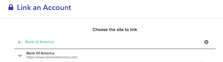 Navigate to Profile > Net Worth > Link Account. Then select a financial institution from the list of popular sites, or search to find and select a different site.