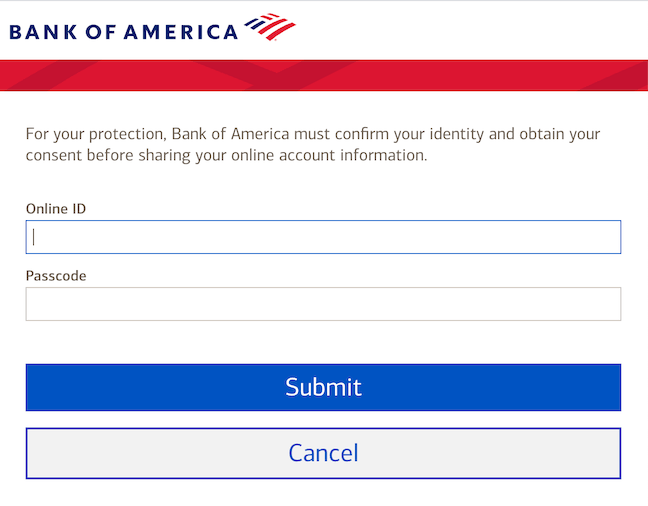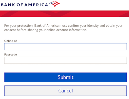 On the financial institution's site, the user will then enter their credentials, select their accounts and agree to the financial institution's terms.