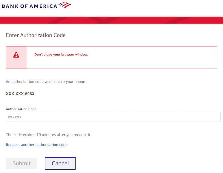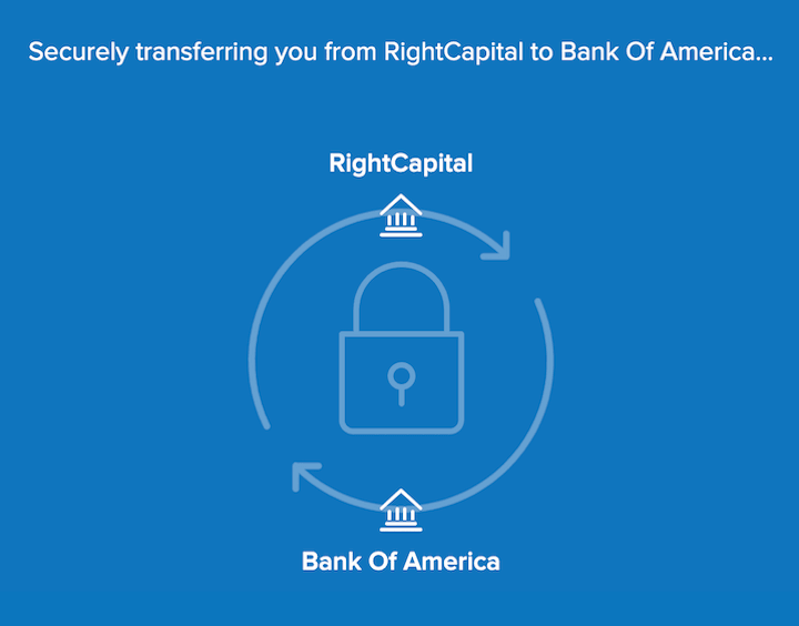An interstitial page shows the user that they are being securely redirected to the financial institution site.