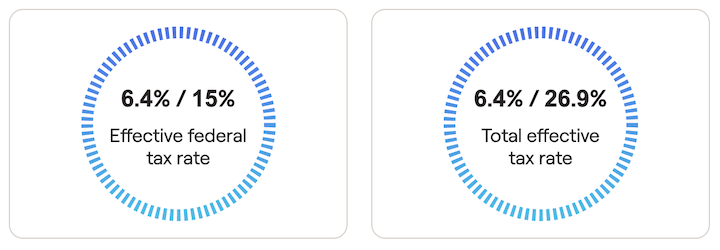 In the Snapshot module, the Tax Estimate metrics will reflect the effective federal and the total effective tax rate for the client and the co-client.