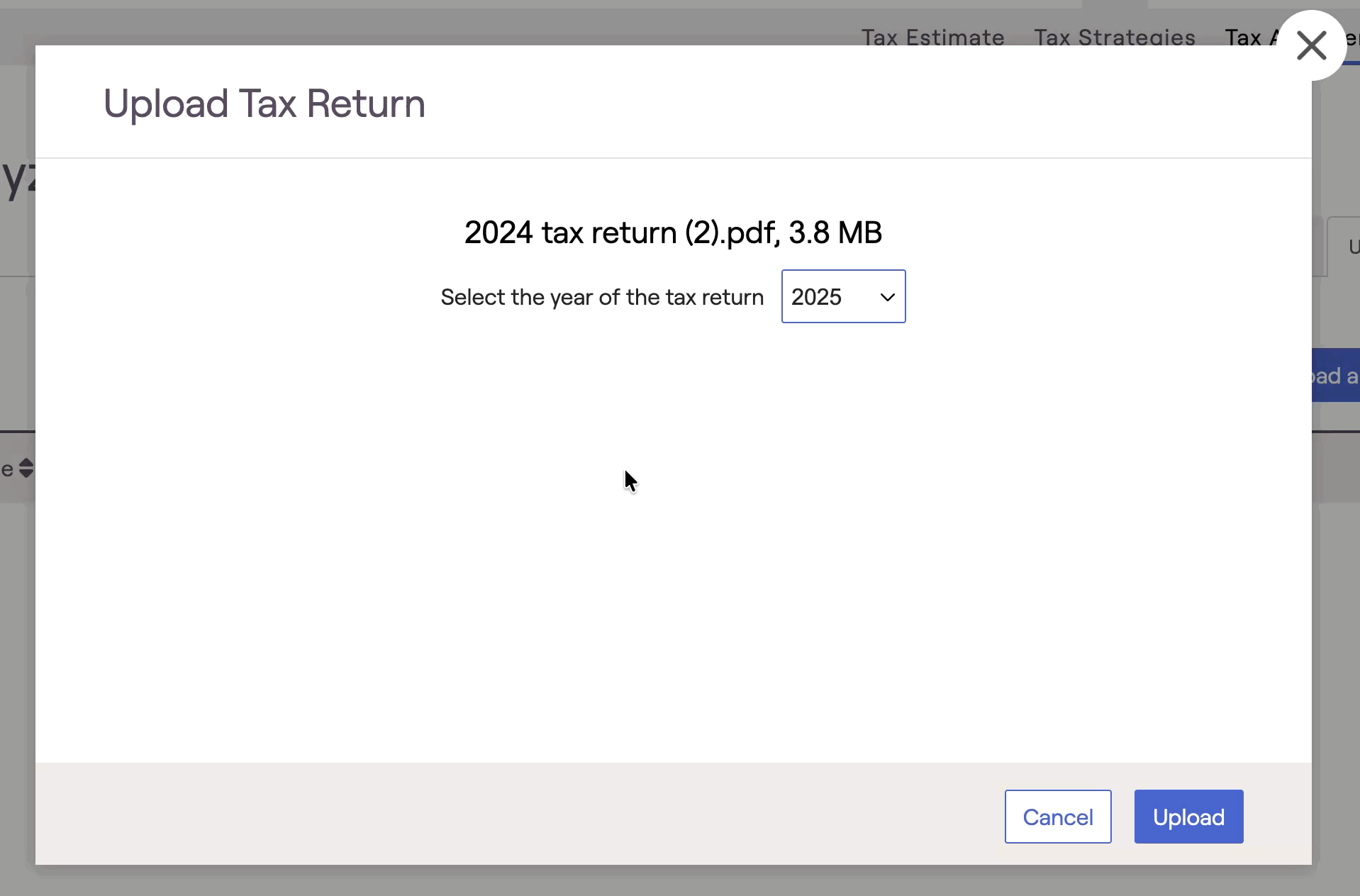 - Only advisors are able to upload returns within the Tax Analyzer. Invited clients will not see the 'Upload a return' button on this page within their client portal.