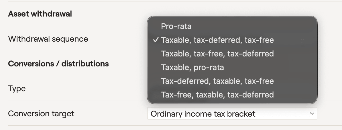 For example, maybe you want to run a dedicated Roth conversion analysis, without considering asset location or withdrawal sequence: