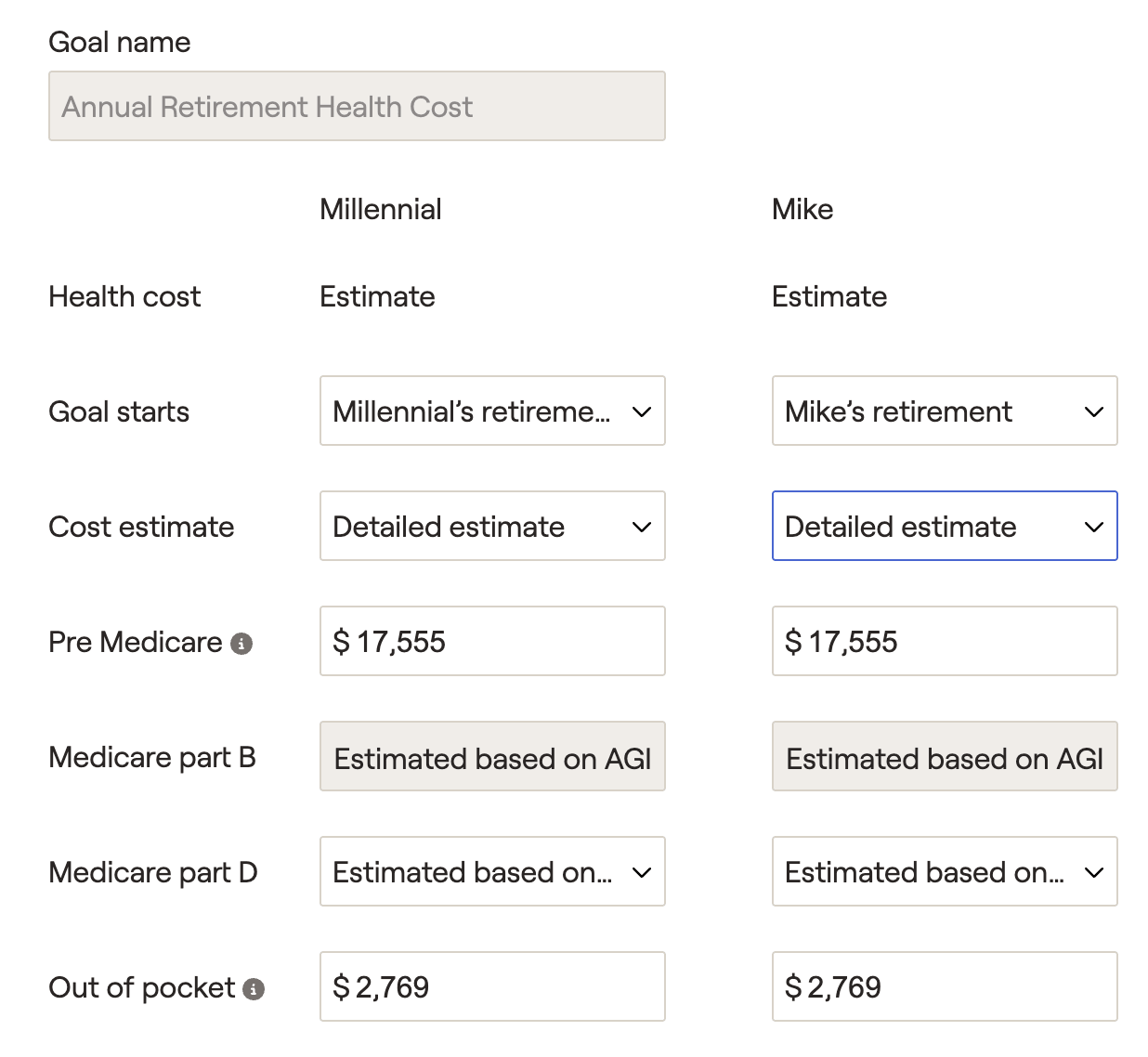 The Medicare premiums table tracks year-to-year MAGI values, IRMAA adjustment thresholds, and medicare premiums paid for each client. Please note that the 'Medicare Premium Threshold' is the lowest IRMAA bracket (indicating the point at which Medicare premiums will be increased).